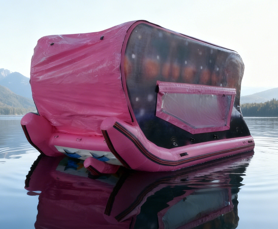 เรือยอชท์เป่าลมแบบพกพา ราคาโรงงาน ขนาด L4.5*W2.5 เมตร เรือบ้านเป่าลมแบบพับได้ ใช้ไฟฟ้า สำหรับเล่นน้ำ