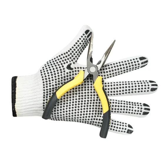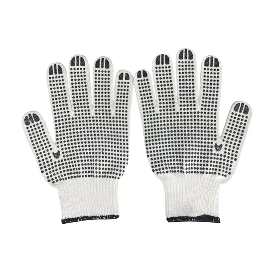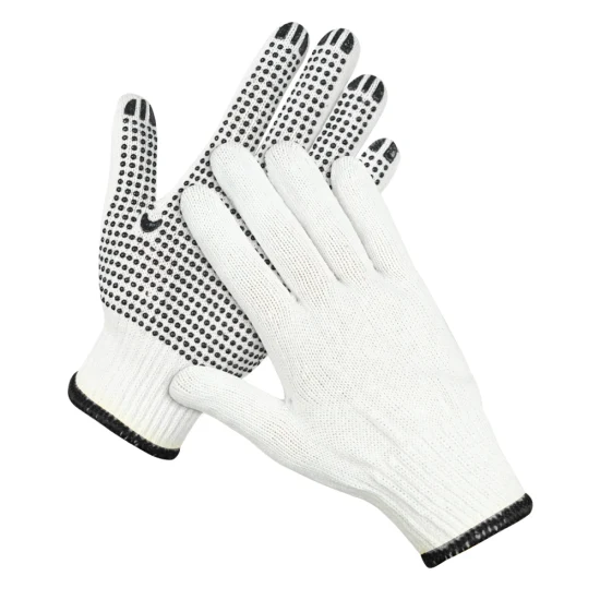 ถุงมือหนังผ้าโพลีคอตตอนถักลายจุดพีวีซีสีดำถุงมือป้องกันสำหรับอุตสาหกรรมก่อสร้าง