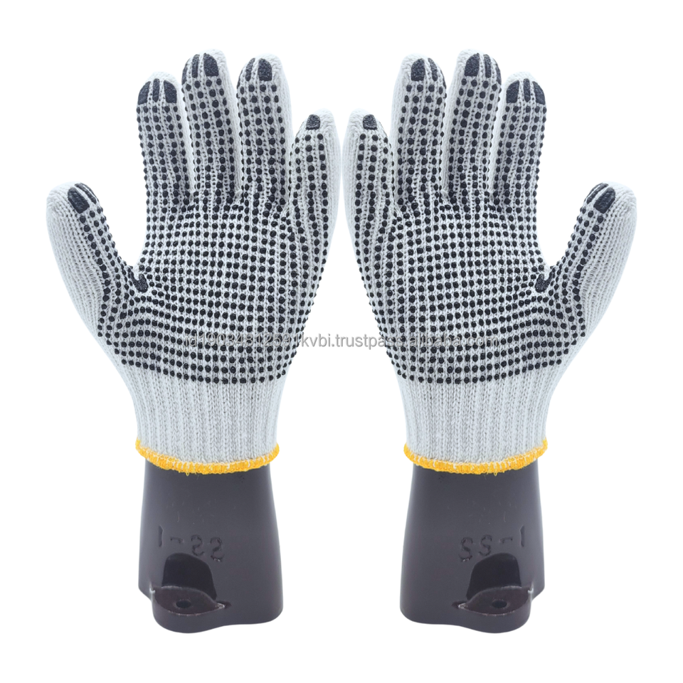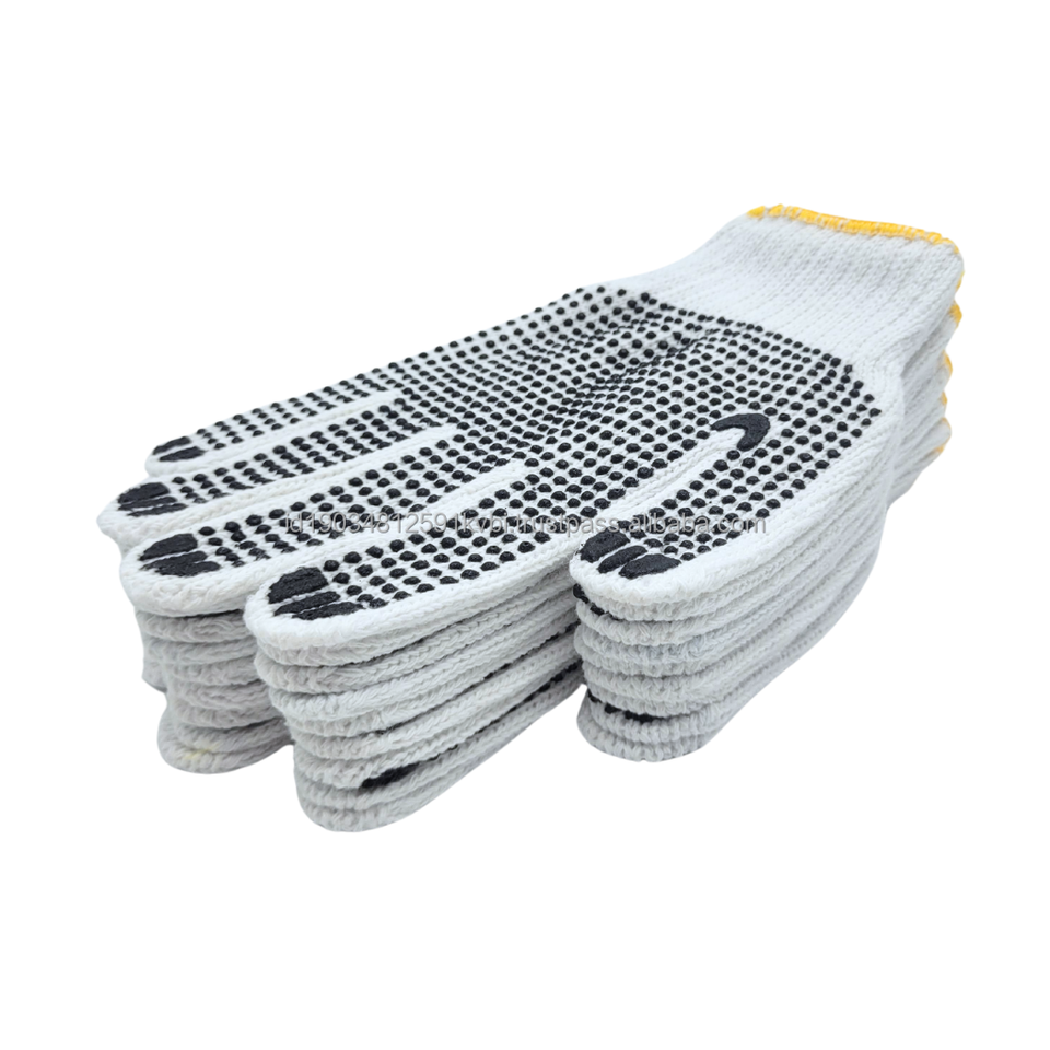 ถุงมือผ้าฝ้ายธรรมชาติสีขาวถุงมือพีวีซีกันลื่นและป้องกันการกระแทกสำหรับอุตสาหกรรมทั่วไปราคาโรงงาน