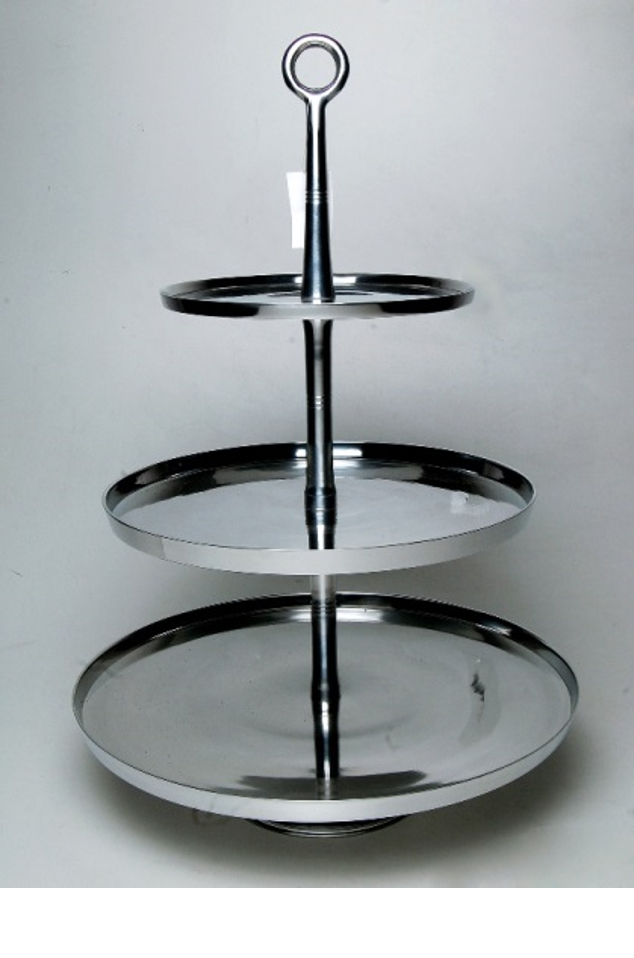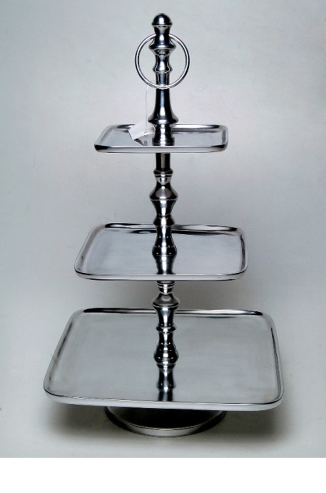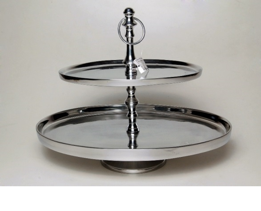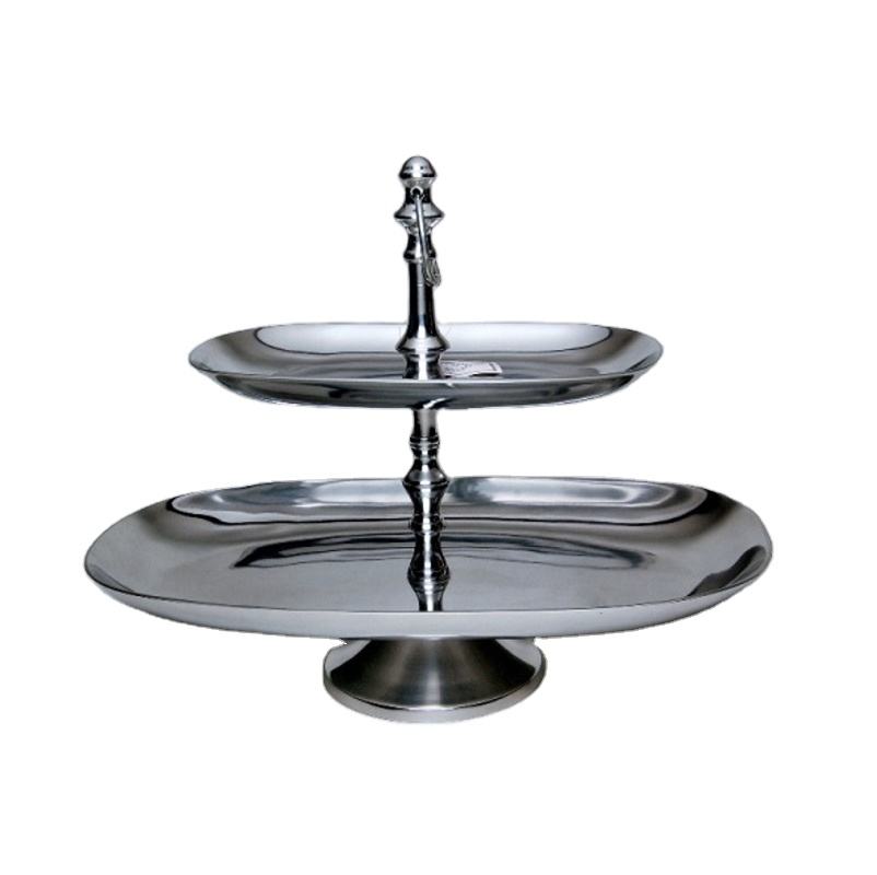 ชั้นวางเค้กอลูมิเนียมสีเงินเงา2ชั้นเครื่องมือเสิร์ฟโลหะสำหรับงานแต่งงานใช้ในเชิงพาณิชย์