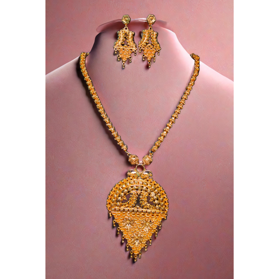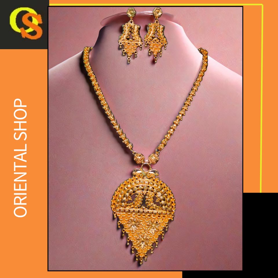 ชุดต่างหูสร้อยคอพร้อมเครื่องประดับชุดต่างหูสร้อยคอชุบทอง22K สำหรับผู้หญิงชุดสร้อยคอต่างหู