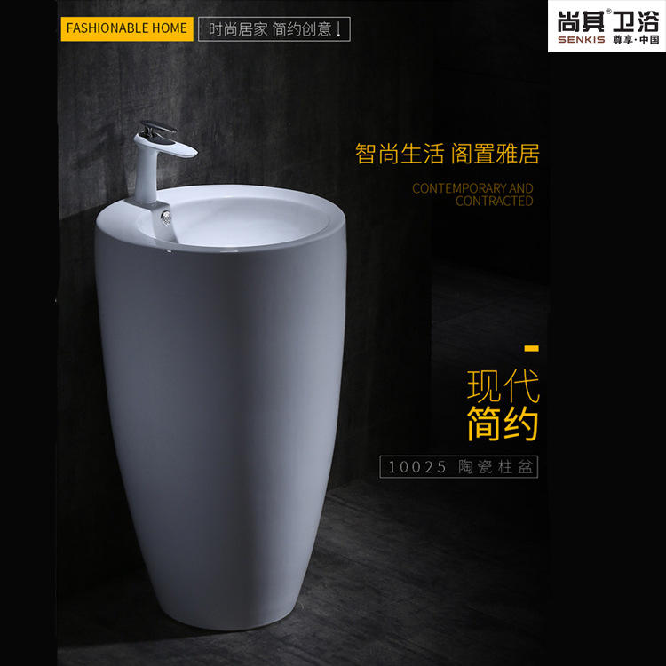 Shangqi อ่างล้างหน้าแบบชิ้นเดียวผลิตจากโรงงานในห้องน้ำ500x500x820mm อ่างล้างหน้าแนวตั้งแบบบูรณาการ