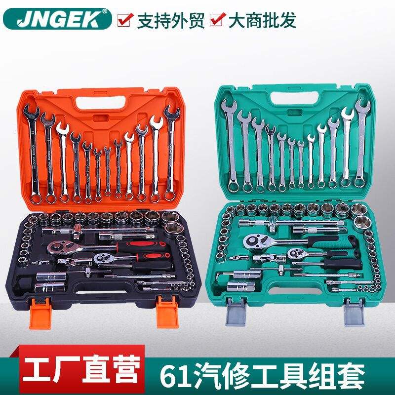 โรงงานผลิตชุดเครื่องมือถอดประกอบรถยนต์ 61 ชิ้น ทำจากเหล็กโครเมียมวานาเดียม คุณภาพสูง สำหรับงานซ่อมบำรุงยานยนต์ บรรจุในกล่องเครื่องมือ พร้อมประแจ