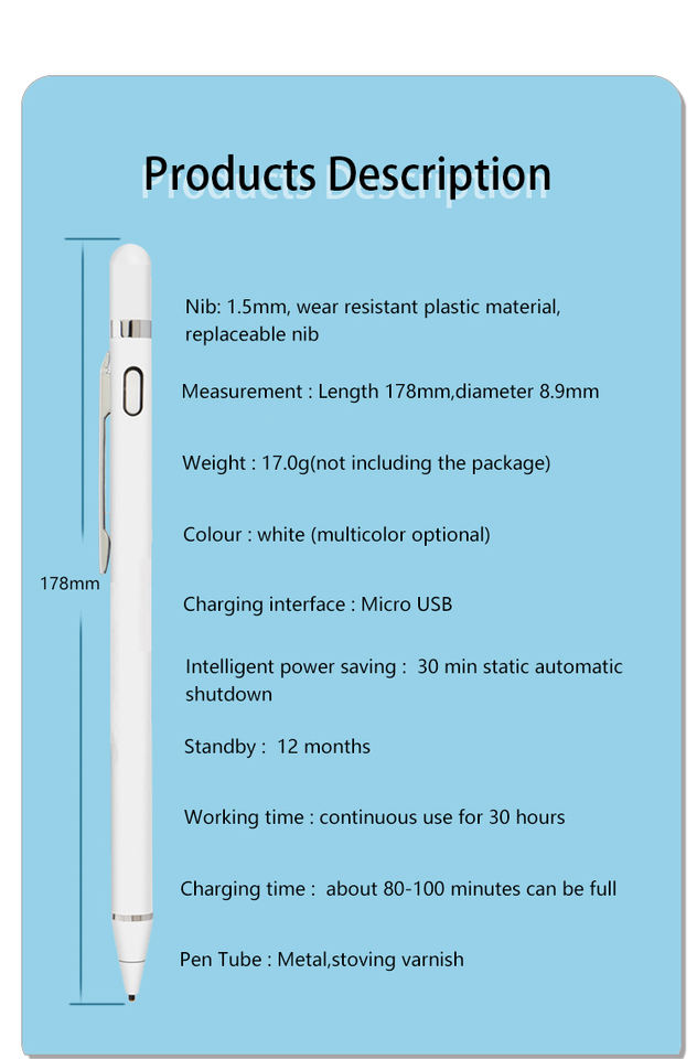 เนื้อหาแพคเกจ:1ปากกา + 1คู่มือ + 1สาย USB + 2เคล็ดลับการเปลี่ยน