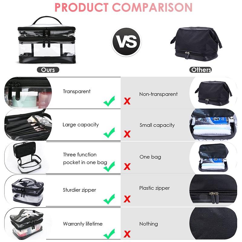 กระเป๋าเครื่องสำอางพีวีซีแฟชั่นสั่งทำพิเศษสำหรับโปรโมชั่นโรงงาน กระเป๋าใส่อุปกรณ์แต่งหน้าแบบใสสั่งทำตามแบบที่ต้องการ