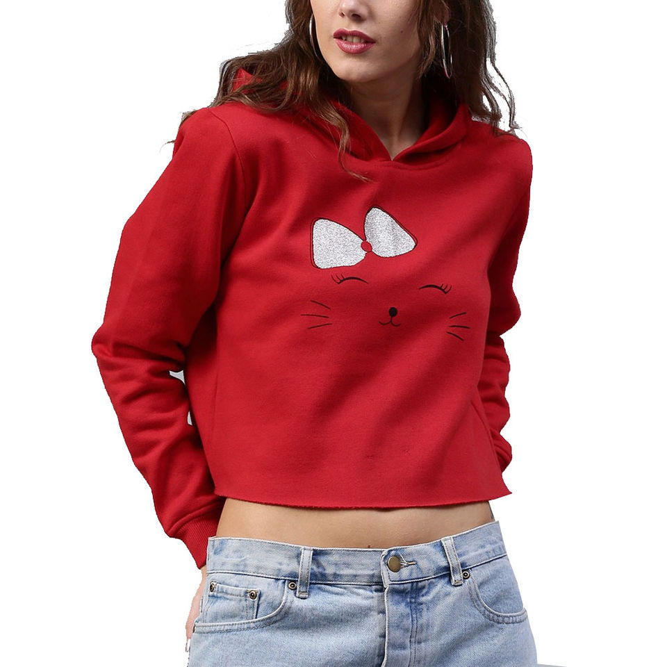 เสื้อถักแบบสวมหัวแฟชั่นสำหรับผู้หญิงเสื้อครอปมีฮู้ดด้านหน้าโลโก้สไตล์ลำลองปรับแต่งได้สำหรับฤดูหนาว