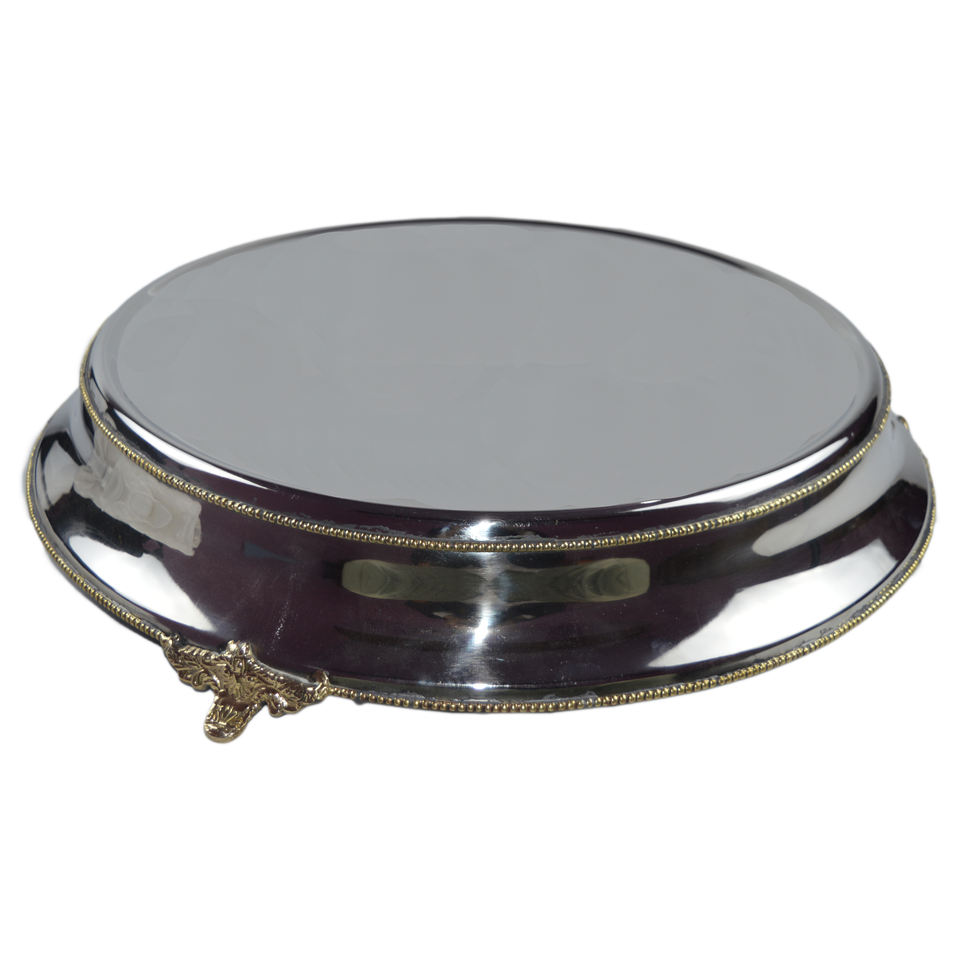 ขาตั้งเค้กโลหะทองเหลืองคุณภาพโรงงาน พร้อมดีไซน์เคลือบเงิน สำหรับจัดวางอาหารบนโต๊ะโรงแรม ใช้ตกแต่งและเสิร์ฟ