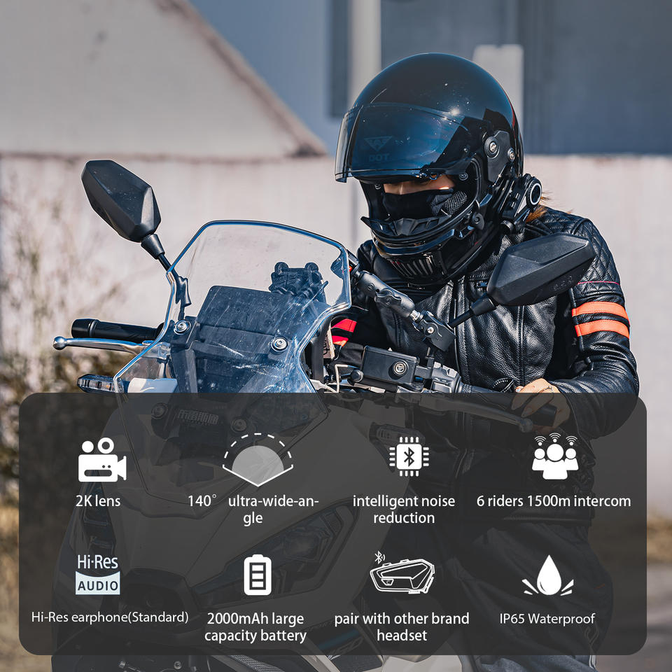 หมวกกันน็อค R3 2K แบตเตอรี่2000mAh ไร้สายบลูทูธหูฟังบันทึกวิดีโอพร้อมกล้องอินเตอร์คอมคอม