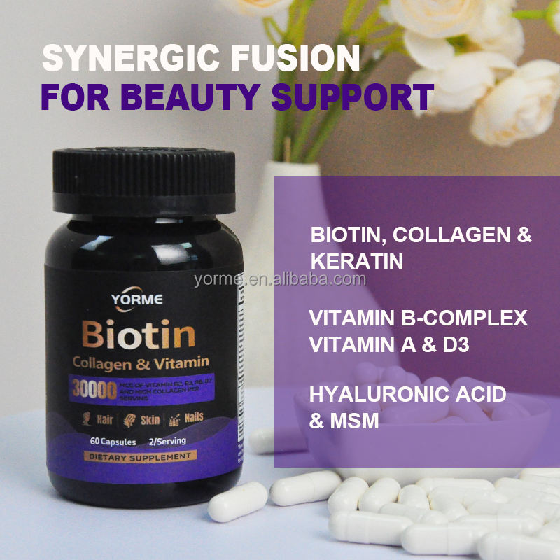 อาหารเสริมไบโอตินคอลลาเจนแคปซูลสำหรับผมและเล็บเพื่อสุขภาพดี