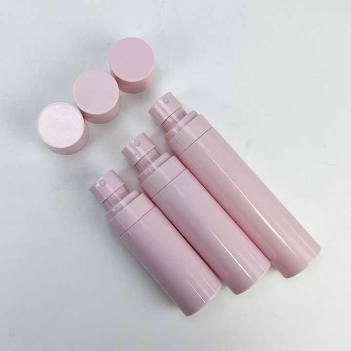 ขวดพลาสติกสำเร็จรูปพร้อมส่ง ขวดเครื่องสำอาง ขวดสเปรย์แอลกอฮอล์ขนาดเล็ก 60 มล. 80 มล. 100 มล. ขวดพลาสติกสีชมพูพร้อมหัวฉีด