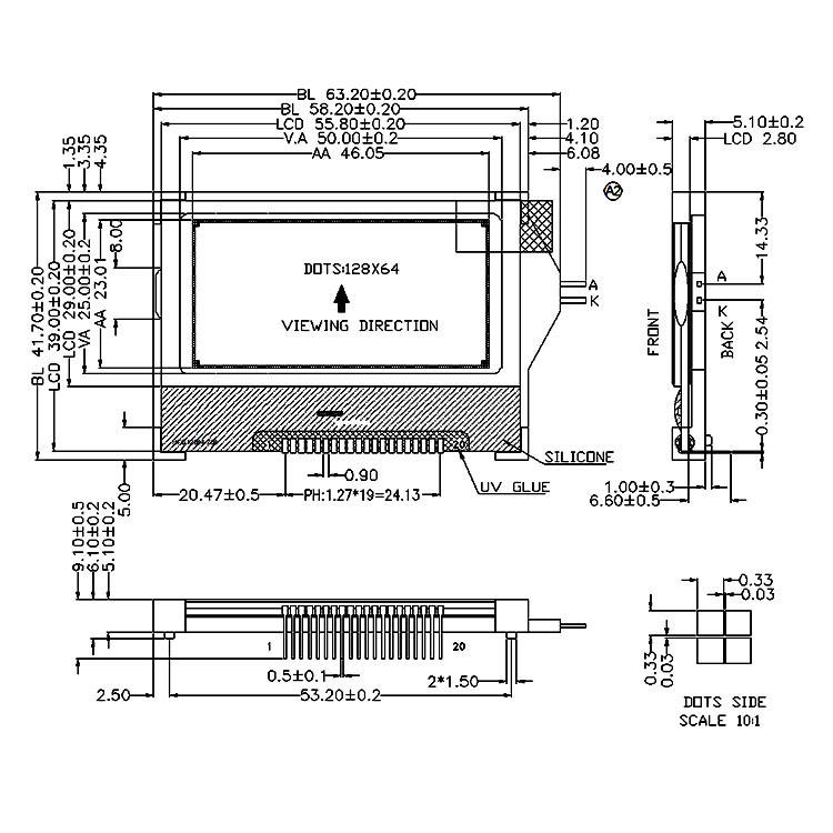 Factory Sale 2.2inch 128*64 128x64 Graphic COG LCD Display Screen Panel Modules with ST7567S Parallel for Instrumentation