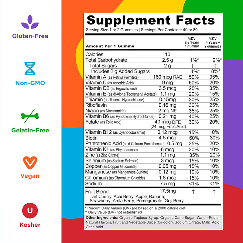 Factory Sale Child Multivitamin Support Healthy Eyes Gummies Halal Support Healthy Nervous System Children Multivitamin Gummy