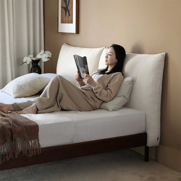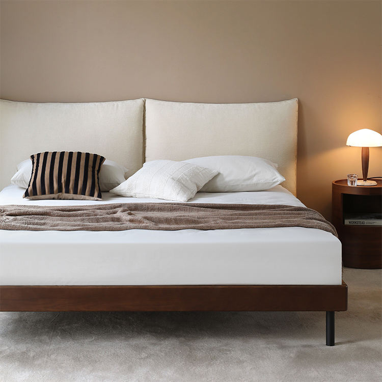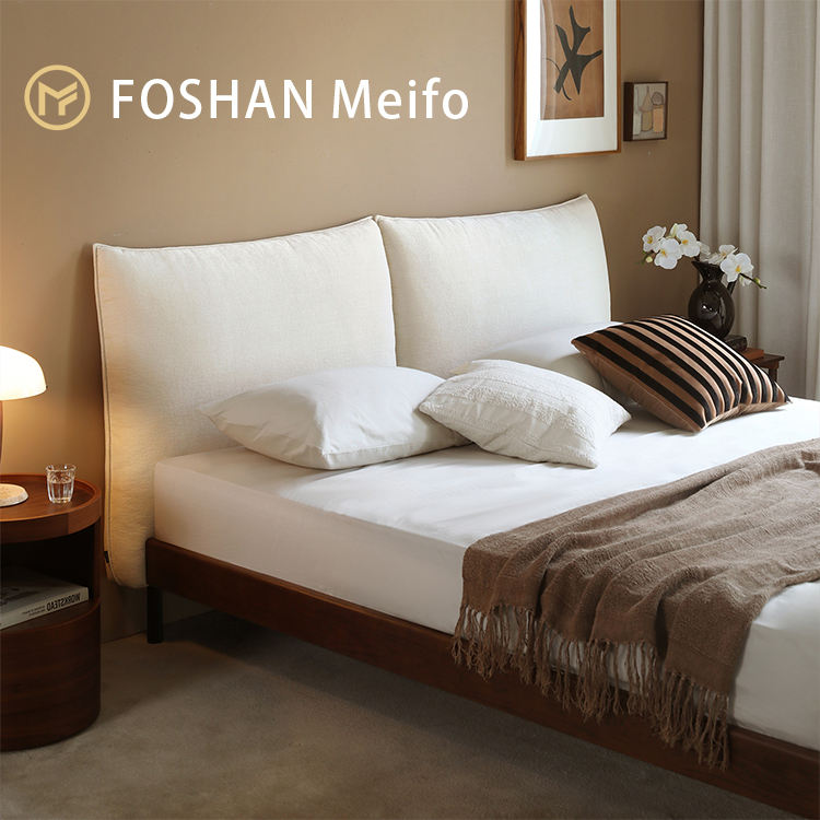 เตียงหรูหราขนาดใหญ่พิเศษสำหรับห้องนอน ลดราคาจากโรงงาน โครงไม้หุ้มผ้าฝ้ายลินิน นอนสบาย