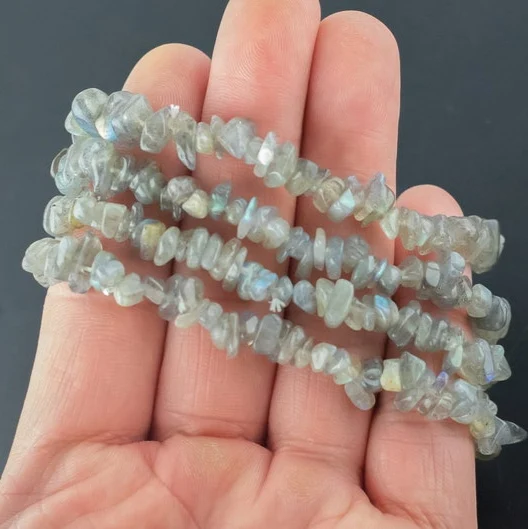 ขายส่งจากโรงงาน หินลาบราโดไรต์ธรรมชาติ หินอาเกต หินเสริมฮวงจุ้ย หินคริสตัลรูปชิปสำหรับทำสร้อยข้อมือ สร้อยข้อมือหินแบบกำหนดเอง ขายส่งอัญมณีหลวม ของที่ระลึกเครื่องประดับ