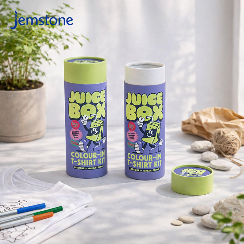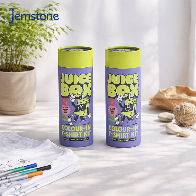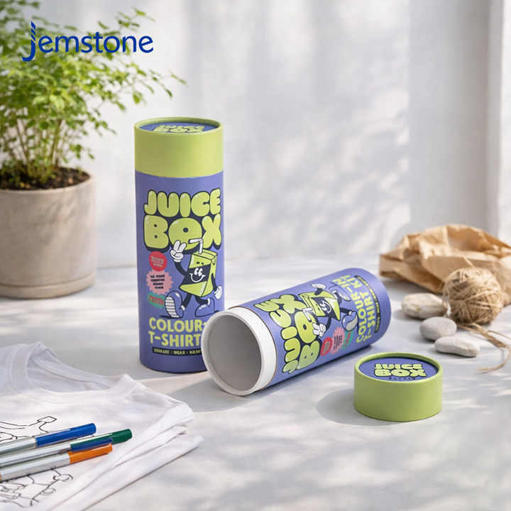 กล่องบรรจุภัณฑ์ทรงกระบอกสำหรับเสื้อยืด ผ้าพันคอ ผ้าขนหนู ทำจากกระดาษแข็งรีไซเคิล สำหรับงานขายส่งจากโรงงาน รับผลิตตามแบบ