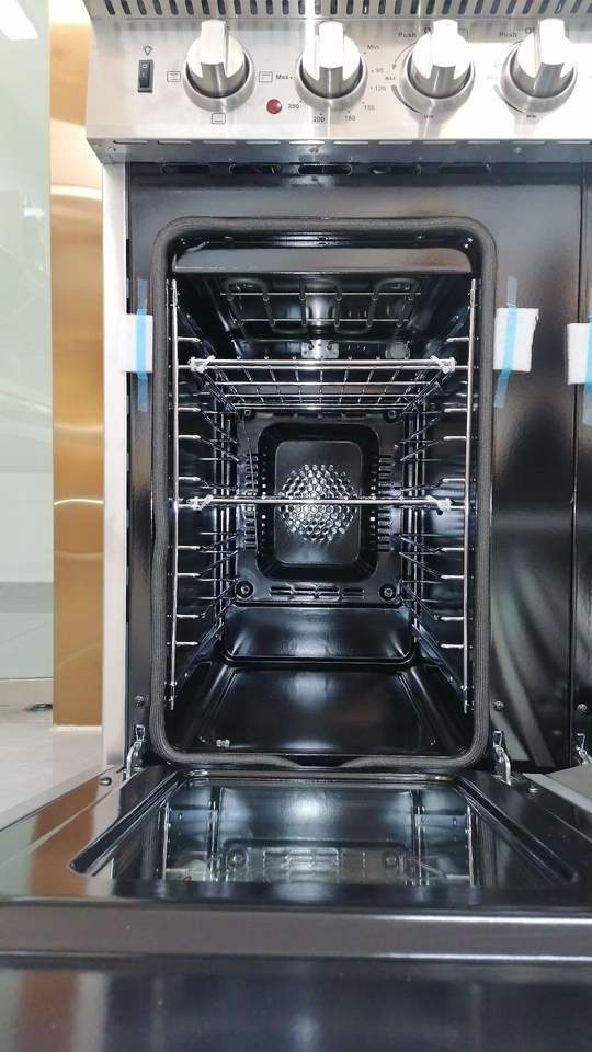 เตาอบแก๊สและไฟฟ้าแบบตั้งพื้นขนาด 48 นิ้ว พร้อมเตาย่างแบบพาความร้อน สำหรับใช้ในครัวเรือน
