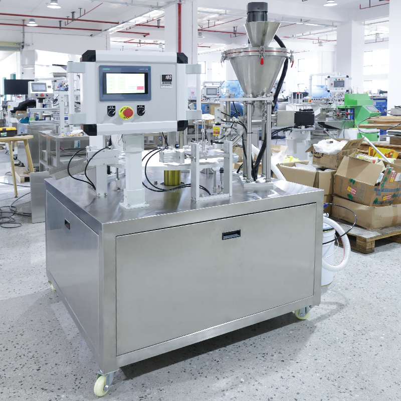เครื่องบรรจุและปิดผนึกแคปซูลกาแฟแบบโรตารี่อัตโนมัติสำหรับโรงงาน ขนาด 200 มล. สำหรับพลาสติก K Cup