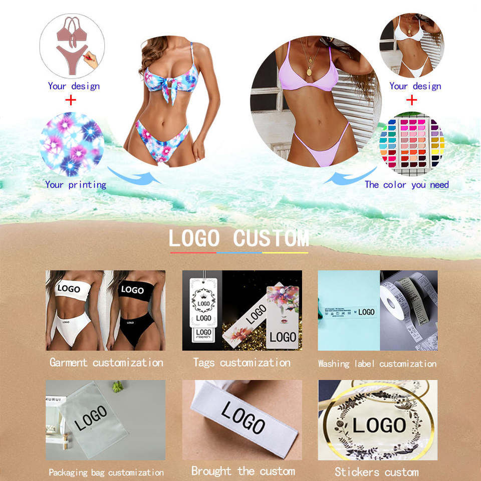 ชุดบิกินี่สองชิ้นแบบเซ็กซี่ ดีไซน์ขายดีจากโรงงาน ชุดว่ายน้ำชายหาด เอวสูง สายรัดคู่ ผูกเชือก ชุดว่ายน้ำผู้หญิงแบบดันทรง