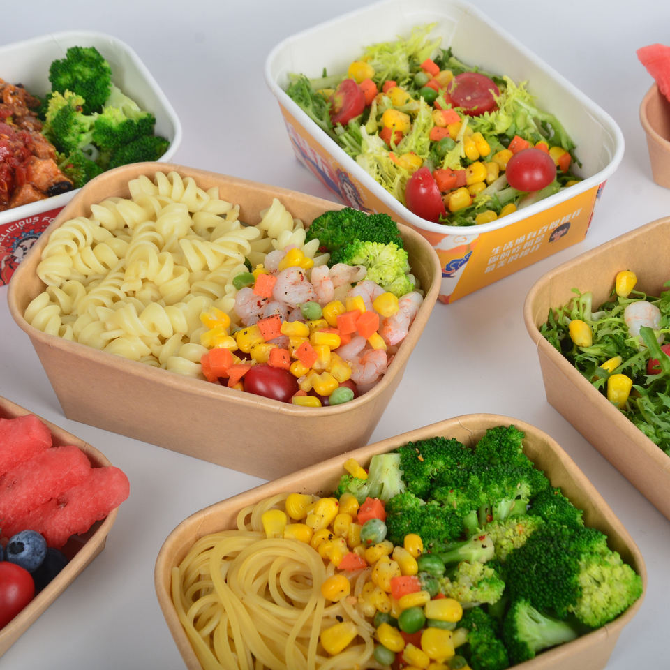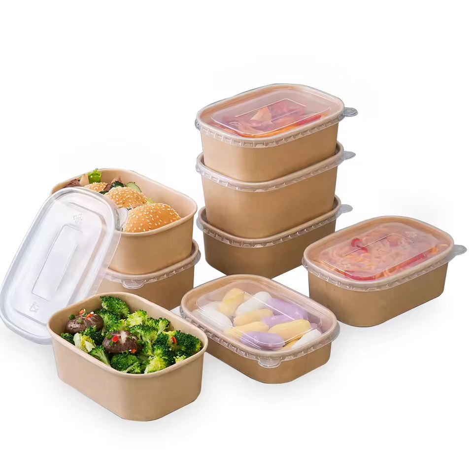 ภาชนะใส่อาหารแบบใช้แล้วทิ้ง ผลิตจากกระดาษคราฟท์ทรงกลม ย่อยสลายได้ เป็นมิตรต่อสิ่งแวดล้อม เหมาะสำหรับใส่ขนม สลัด ผลไม้ พร้อมเคลือบ PE/PLA