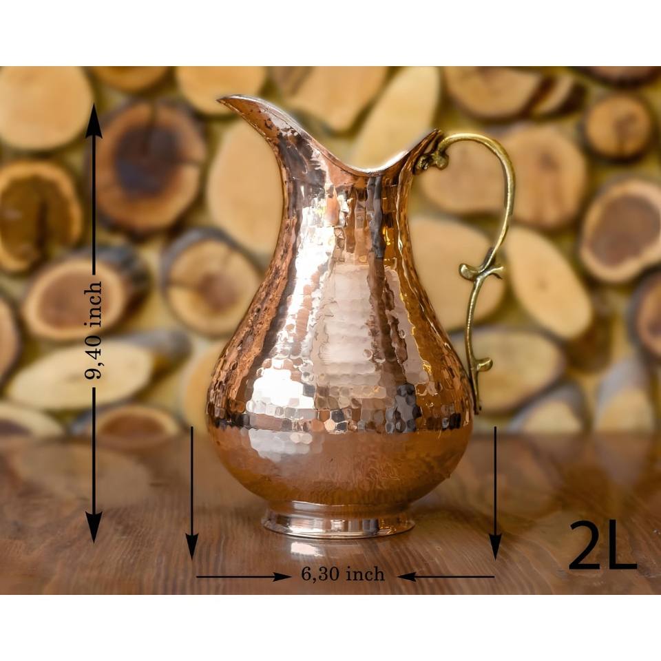 ชุดเหยือกทองแดงและแก้วทัมเบลอร์เหยือกทองแดงทำด้วยมือเหยือกทองแดงขนาด2ลิตรชุดเหยือกทองแดงขนาด70นิ้ว