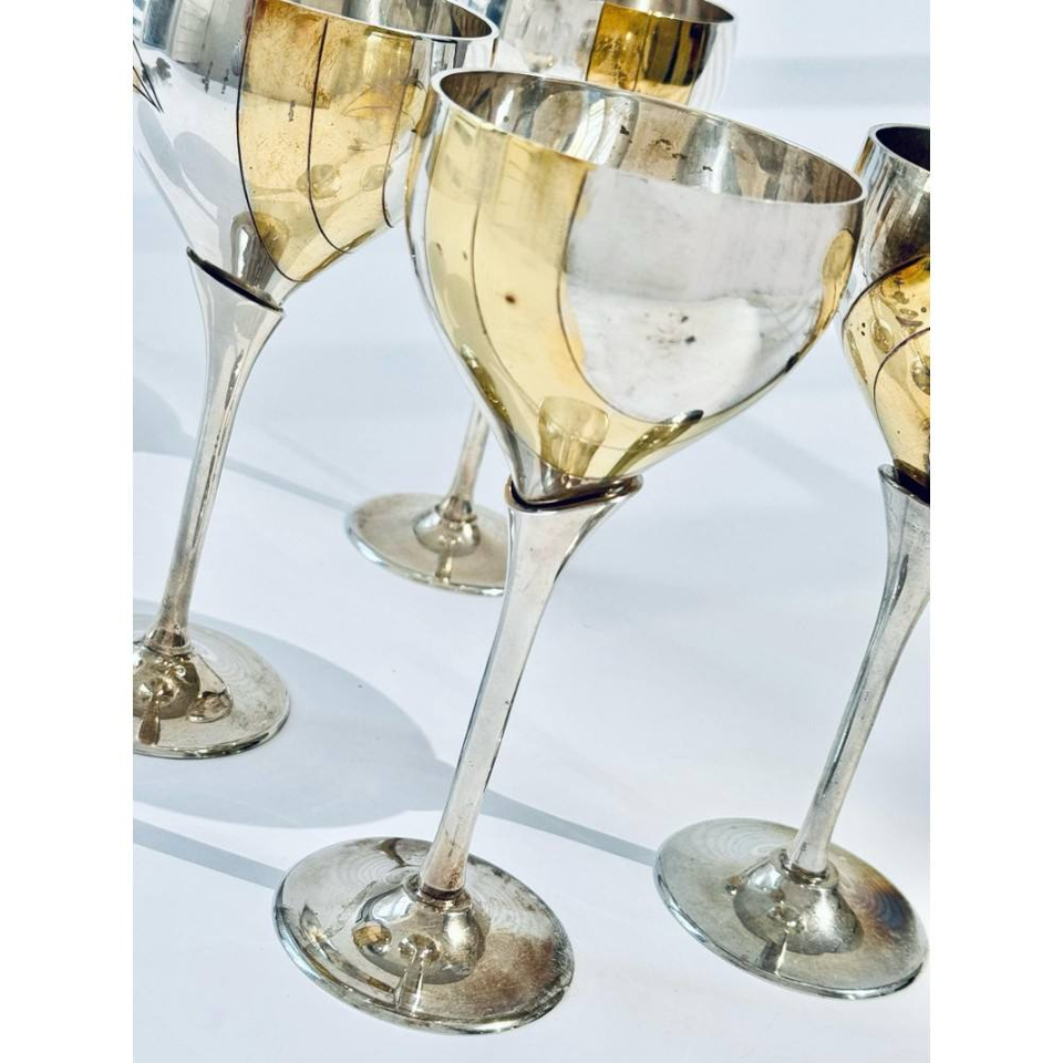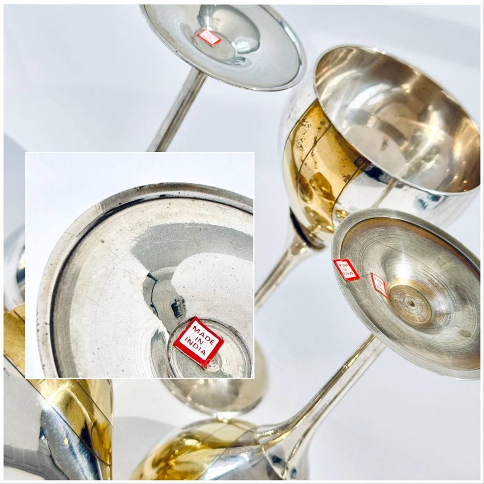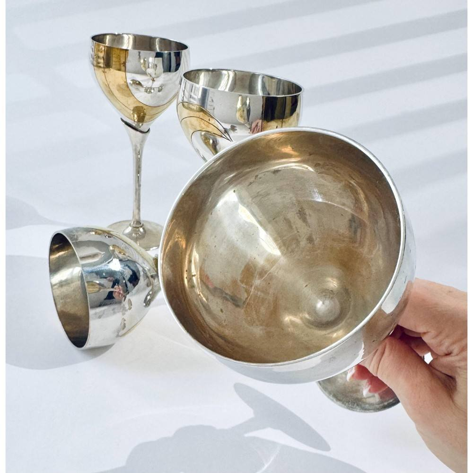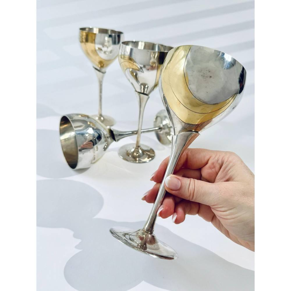 Factory Sell Silver Metal Brass Luxury Elegant Handmade Eco-Friendly Wine Goblets Set of 4 Retro 70s Chalice Barware Set