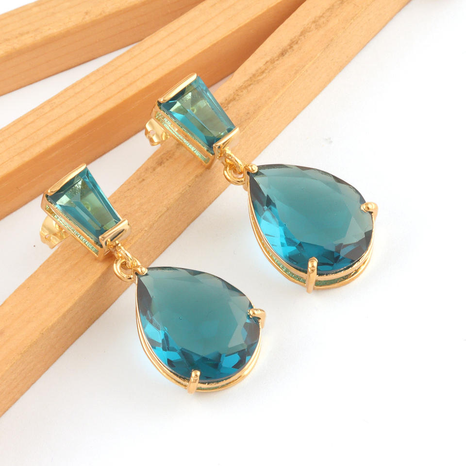 ต่างหูเม็ดกลมทรงลอนดอนบลูควอทซ์สำหรับวางแนว,เครื่องประดับชุบทองแบบกำหนดเองได้