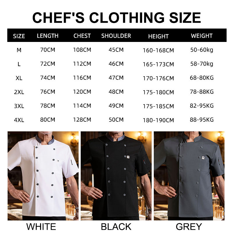 ชุดเชฟแขนสั้นแบบสั่งตัดสำหรับผู้ชายเสื้อผ้าเชฟแบบกระดุมสองแถวชุดยูนิฟอร์มเชฟปักลายสำหรับฤดูร้อน