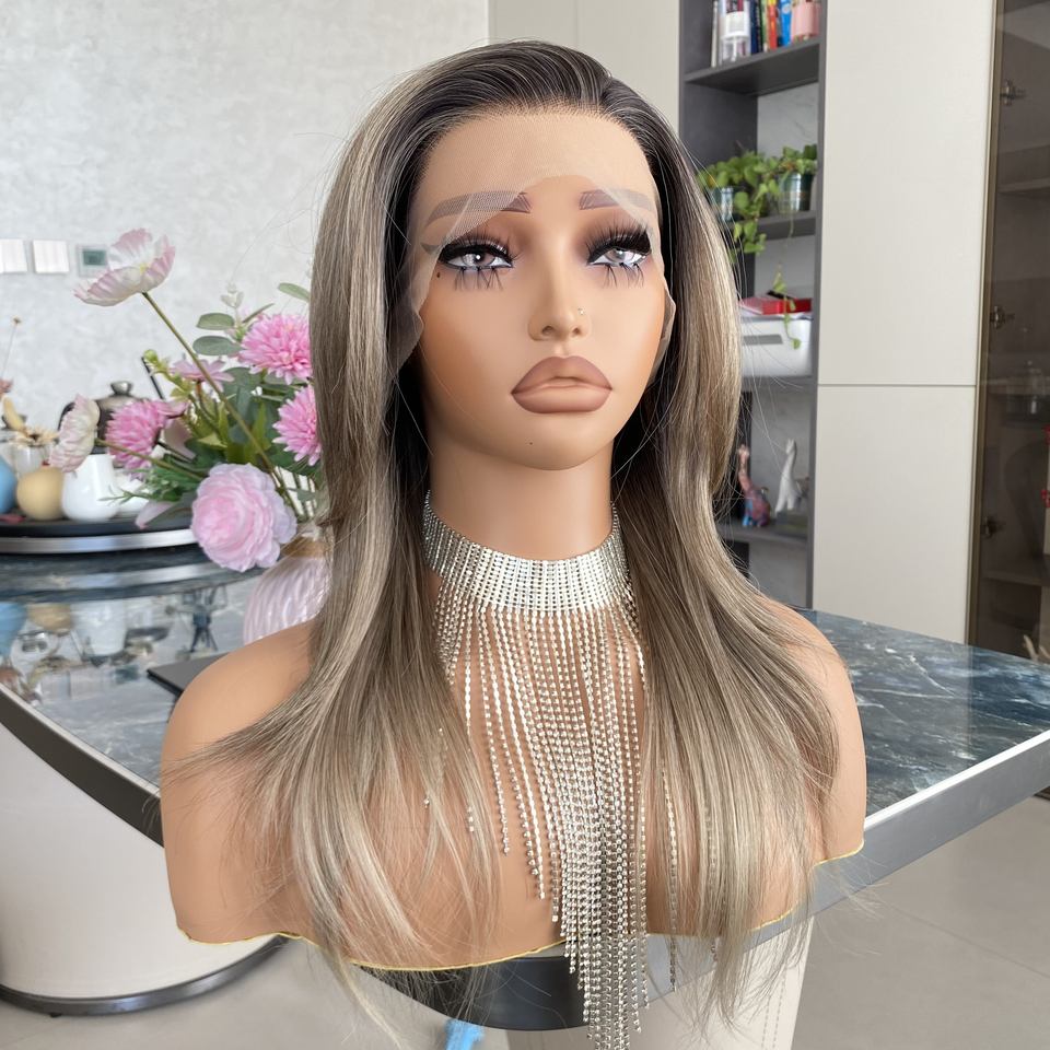 วิกผมสังเคราะห์แบบลูกไม้ด้านหน้าขนาดเล็ก 13x4 สีน้ำตาลผสมบลอนด์ ใยทนความร้อนสูง พร้อมลูกไม้โปร่งใส ความหนาแน่น 130%
