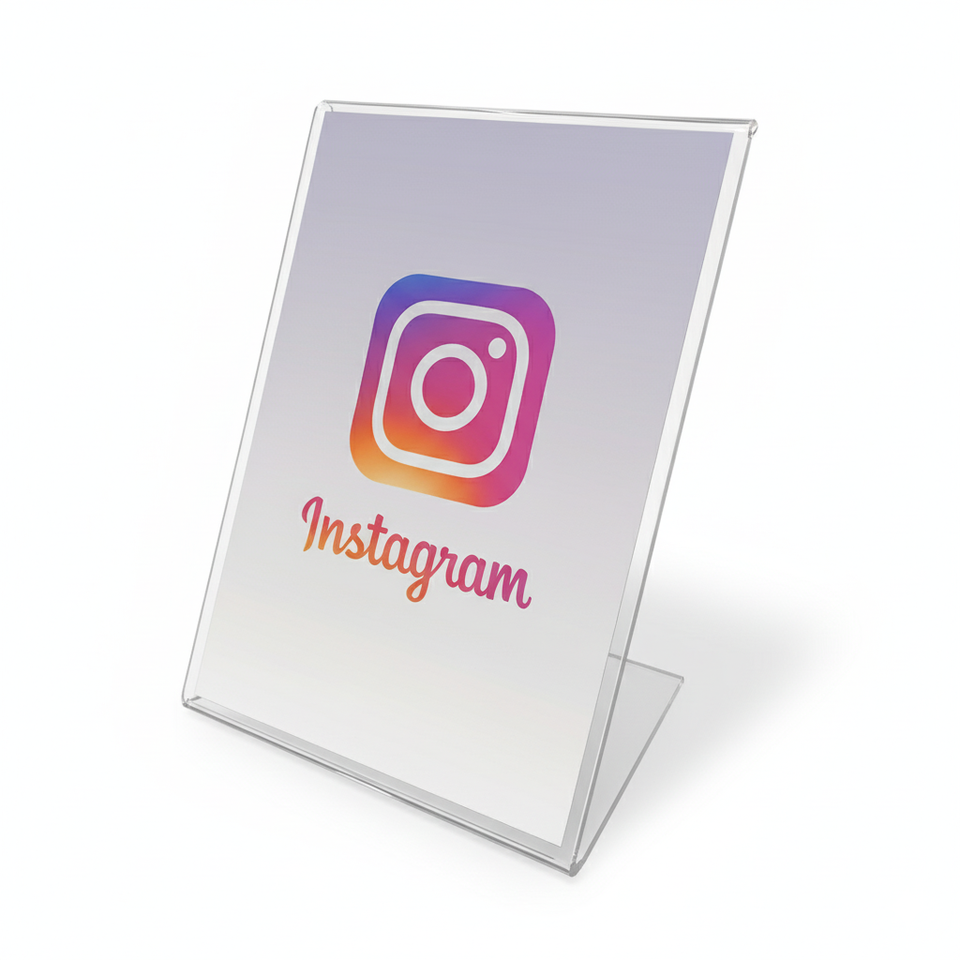 แผงจอแสดงผลพีวีซีแบบสแตนด์อร์แบบติดบนจอไวเนสแท็บสื่อสังคมออนไลน์แบบอะคริลิค QR โค้ด