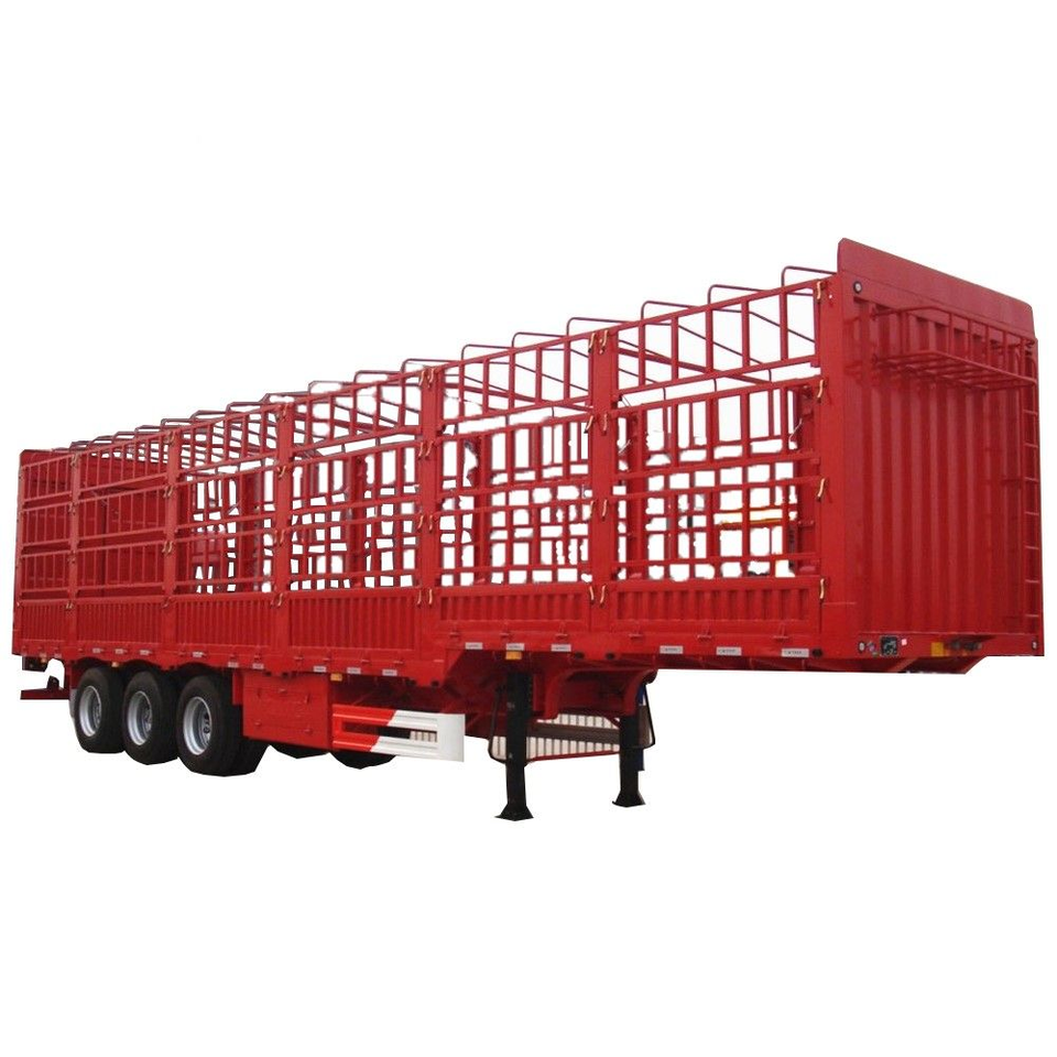 รถกึ่งพ่วงบรรทุกสินค้าเหล็กแบบใหม่จากโรงงาน พร้อมรั้วป้องกัน บรรทุกได้ 40-60 ตัน แบบสามเพลา