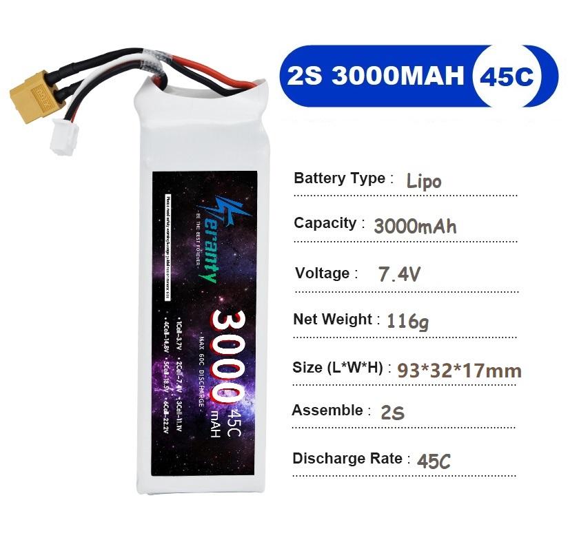 45C แบตเตอรี่ Lipo 2S 3S 4S 6S 3000mAh สำหรับโดรน RC เฮลิคอปเตอร์7.4V 11.1V 14.8V 22.2V ขายส่งราคา5ชิ้น