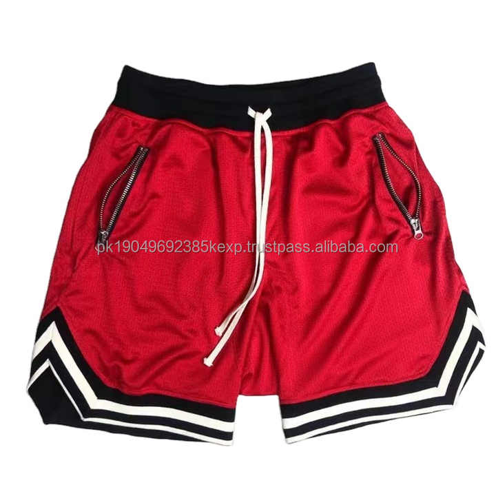 กางเกงฟิตเนสขาสั้นผู้ชายขาสั้นฮิปฮอปบาสเก็ตบอลลำลองระบายอากาศสีพื้น