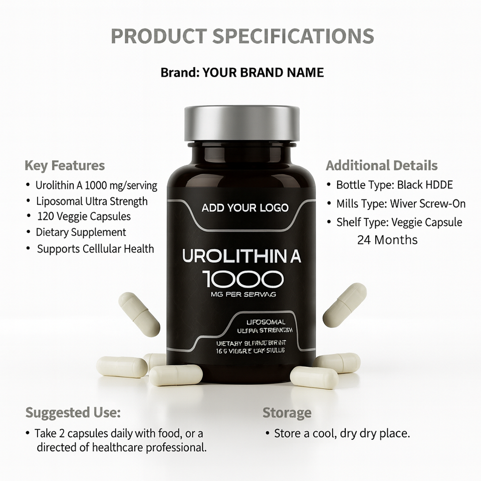 อาหารเสริมยูโรลิธิน เอ 1000 มก. ยูโรลิธิน เอ แบบลิโปโซม อาหารเสริมชนิดแคปซูลสำหรับผู้ใหญ่ เพื่อสุขภาพที่ดีทั่วไป