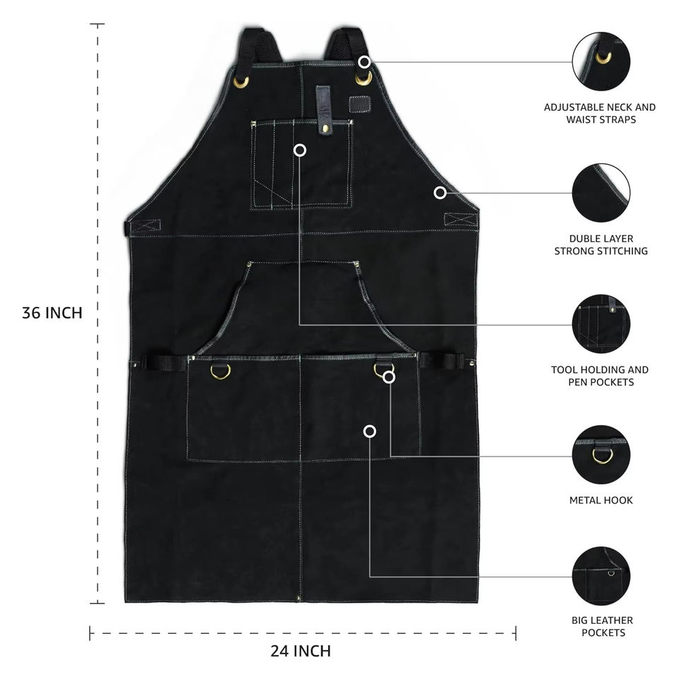 ผ้ากันเปื้อนหนังสีน้ำตาลสำหรับบาร์เทนเดอร์ พนักงานเสิร์ฟ เชฟ ทำสวน ทำครัว ทำผม ทำบาร์บีคิว สำหรับผู้ชาย จากโรงงานผู้ผลิต