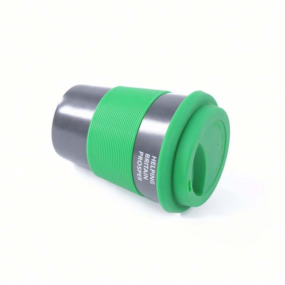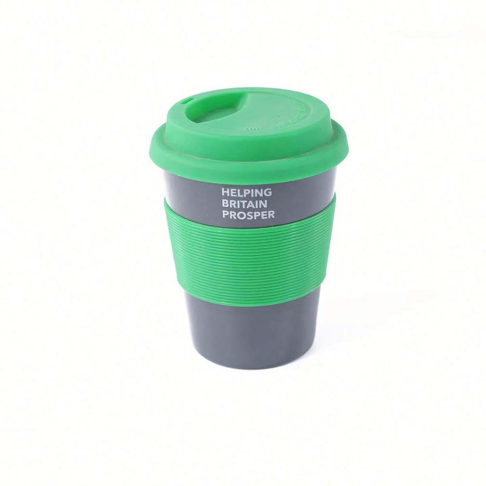โรงงานผู้ผลิต แก้วกาแฟพลาสติกโพลีโพรพิลีนสีน้ำเงินขาว ขนาด 8 ออนซ์ แบบใช้ซ้ำได้ สกรีนโลโก้ตามสั่ง สำหรับโปรโมชั่น