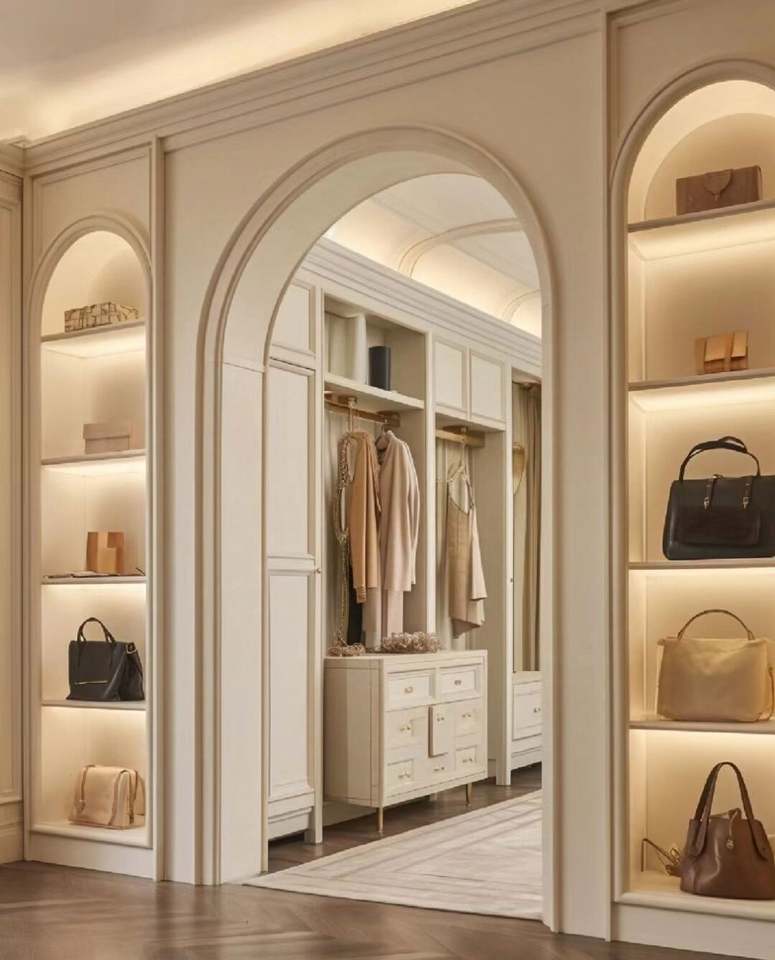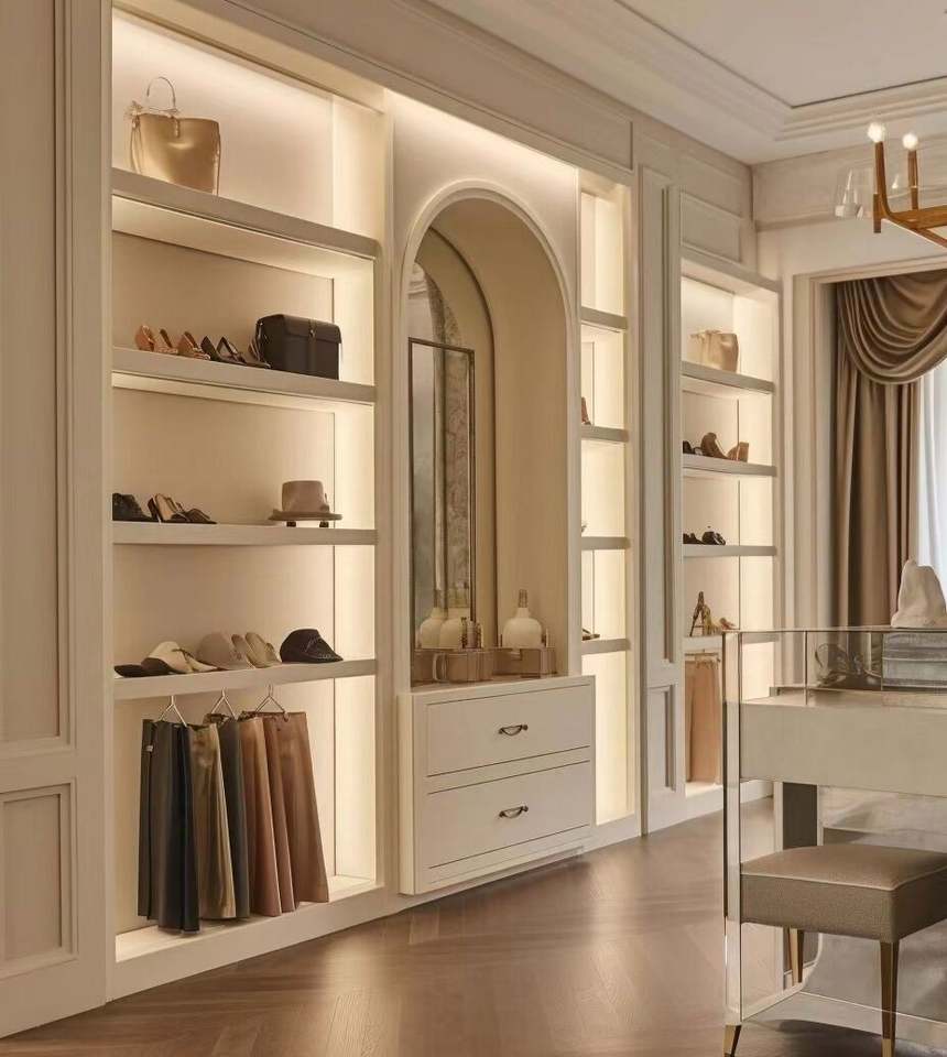 โรงงานผลิตตู้เสื้อผ้าแบบวอล์กอินทันสมัยสำหรับห้องนอน โซลูชั่นการจัดเก็บที่หรูหราปรับแต่งได้ด้วยวัสดุไม้