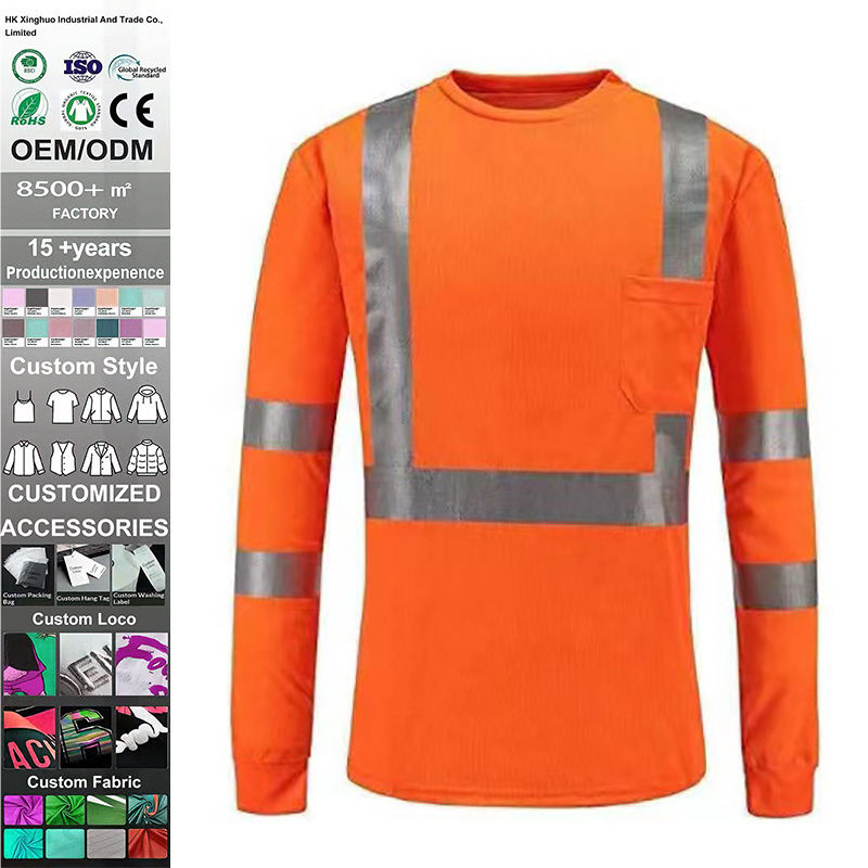 เสื้อทำงานนิรภัยสำหรับงานก่อสร้าง แบบยูนิเซ็กซ์ ผลิตจากโรงงาน 100% โพลีเอสเตอร์ สะท้อนแสง กันน้ำ ระบายอากาศ กันฝุ่น ทนไฟ แขนยาว