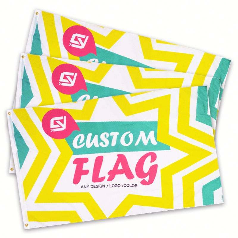 ผ้าโพลีเอสเตอร์แบบมีแถบ2แบบกำหนดเองธงแบบกำหนดเองรูปดาวสีเหลืองแบบ100%