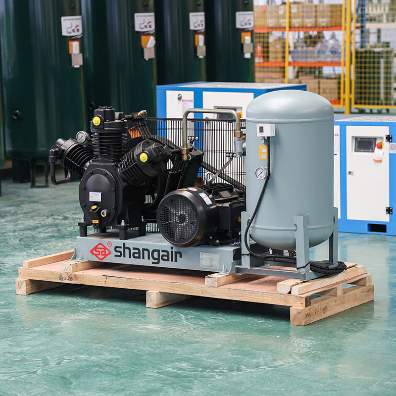 โรงงานผลิตมอเตอร์อัดอากาศแบบลูกสูบขนาด 15 แรงม้า ความดันปานกลาง ระบายความร้อนด้วยอากาศ พร้อมระบบหล่อลื่น สำหรับการเป่าขวดพลาสติก