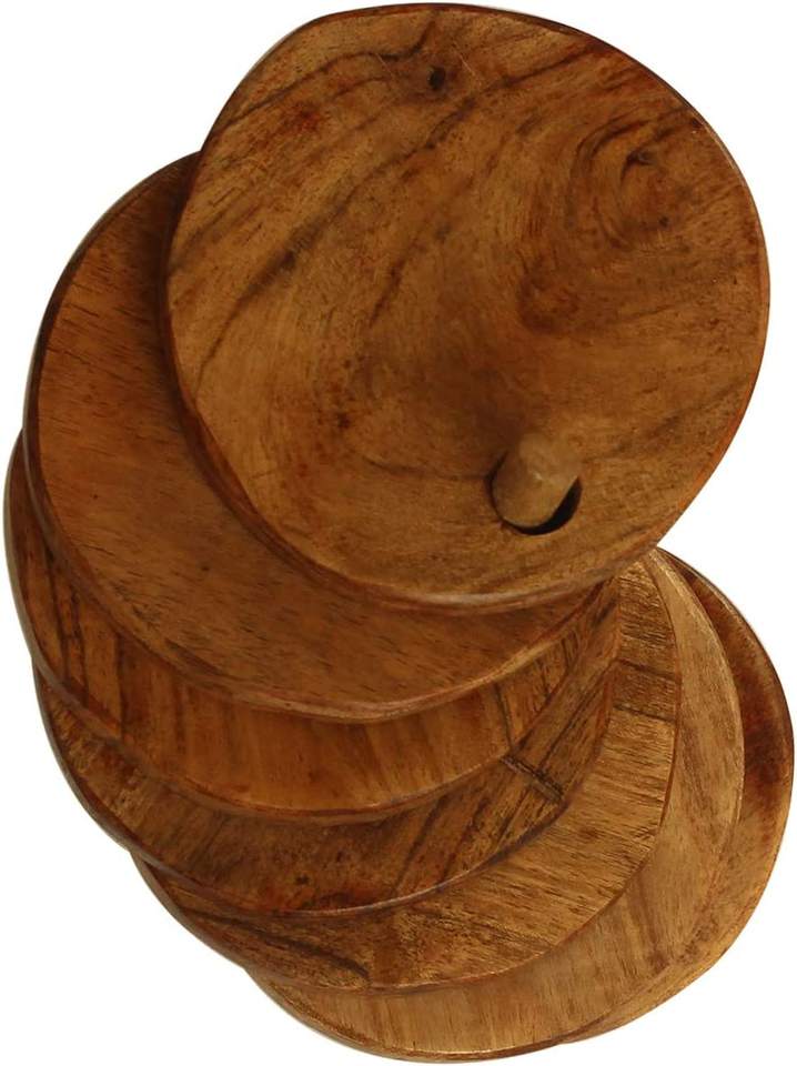 ที่รองแก้วอะคาเซียพร้อมที่จับที่รองแก้วเครื่องดื่มชาสั่งทำรูปทรงและขนาดที่ดาวงานฝีมืออินเดีย
