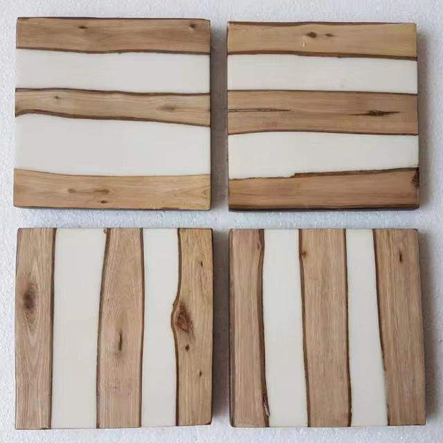 จานรองแก้วอะคาเซียพร้อมที่จับสำหรับใส่เครื่องดื่มชารูปร่างเรซินที่กำหนดได้เอง