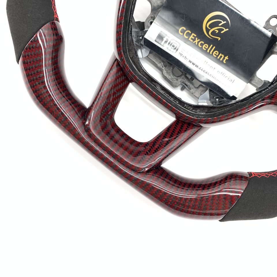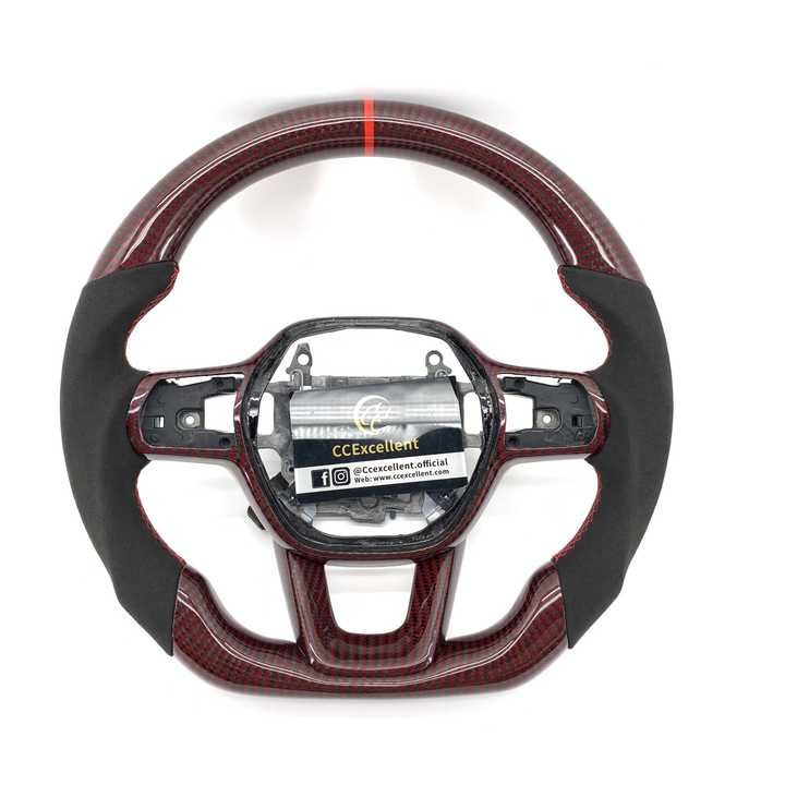 พวงมาลัยคาร์บอนไฟเบอร์สีดำและสีแดงพร้อมหนังรูระบายอากาศสีดำสำหรับรถยนต์ Civic DE5 Integra รุ่นที่ 11 ปี 2022+ จากโรงงาน