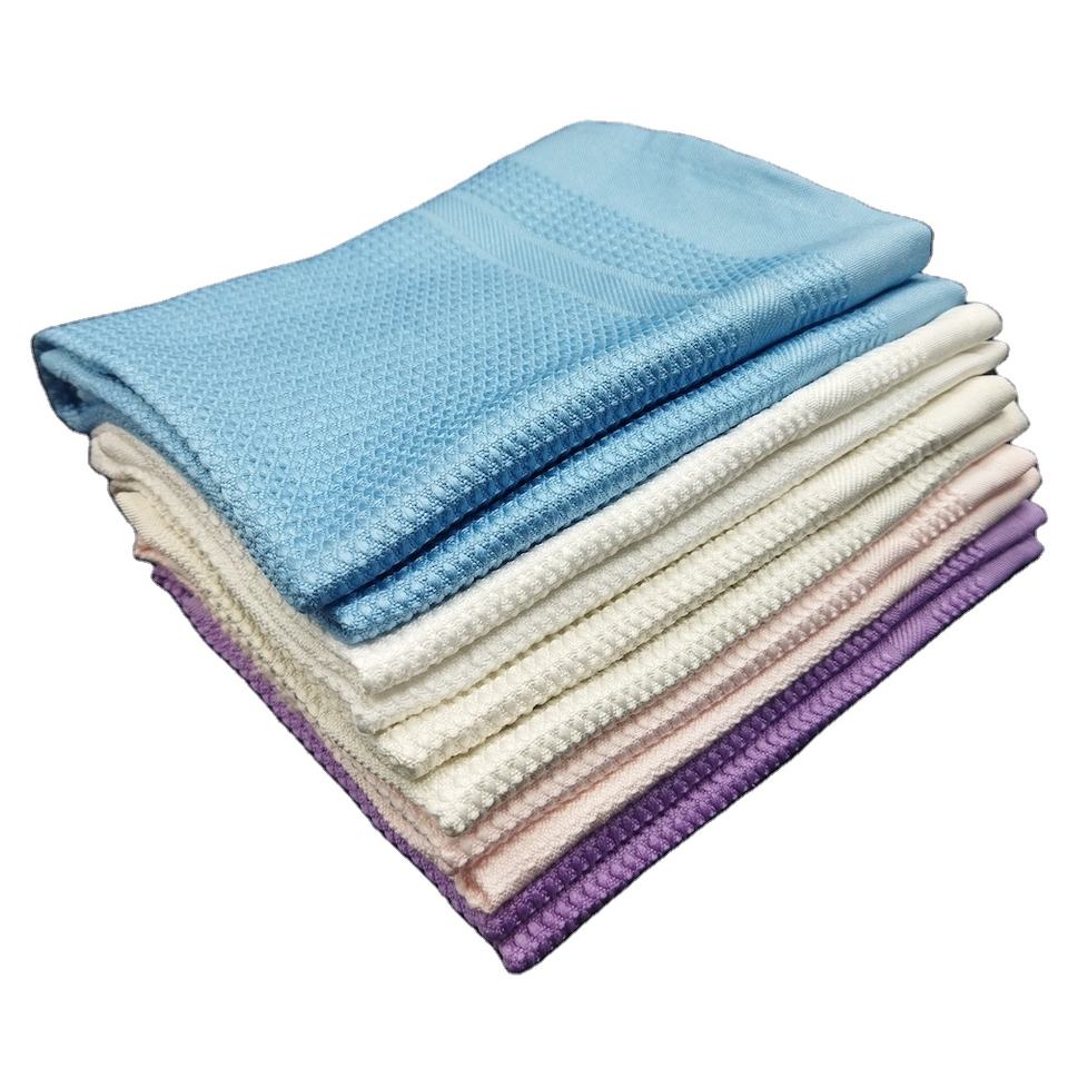 ผ้าเช็ดจานวาฟเฟิลสำหรับห้องครัวผ้าไมโครไฟเบอร์ดูดซับได้ดีผ้าเช็ดทำความสะอาดรถยนต์
