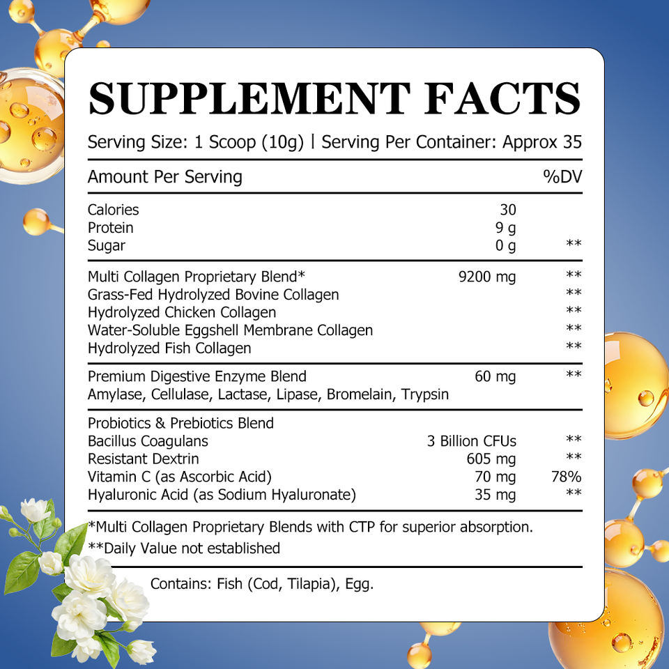 ส่วนผสมหลัก:ส่วนผสมคอลลาเจนรวมสูตรเฉพาะ, เดกซ์ทรินทนต่อการย่อย, วิตามินซี