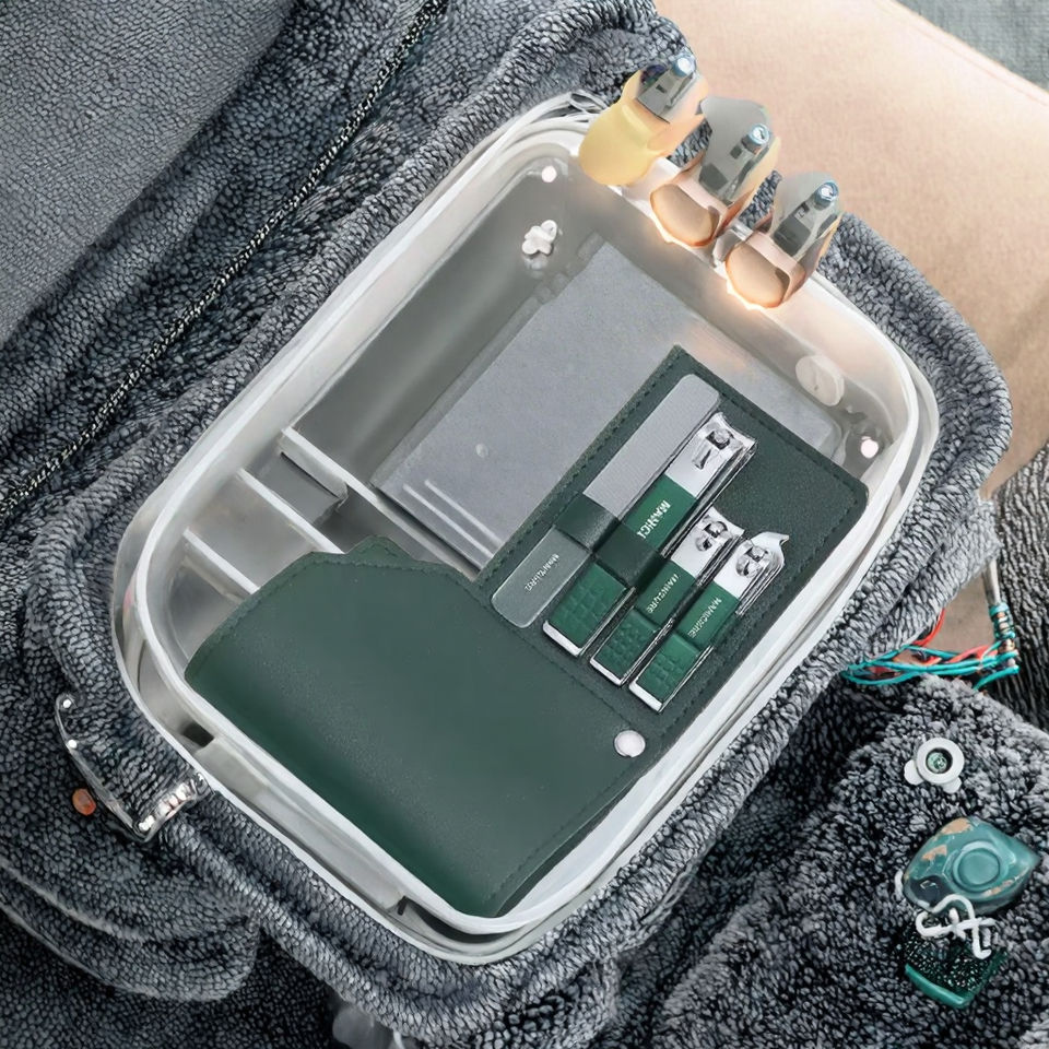 ชุดทำเล็บสแตนเลสสีดำแบบกำหนดเองจากโรงงาน ทนทาน 3 in 1 พร้อมที่ตัดเล็บตรง ที่ตัดเล็บเท้า และตะไบเล็บ บรรจุในกล่อง