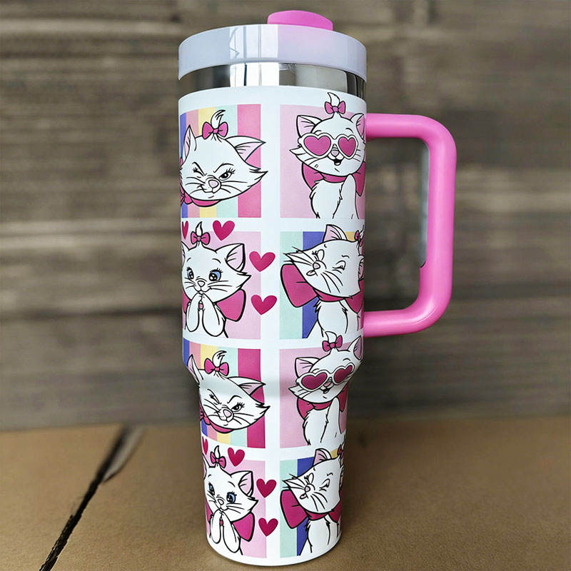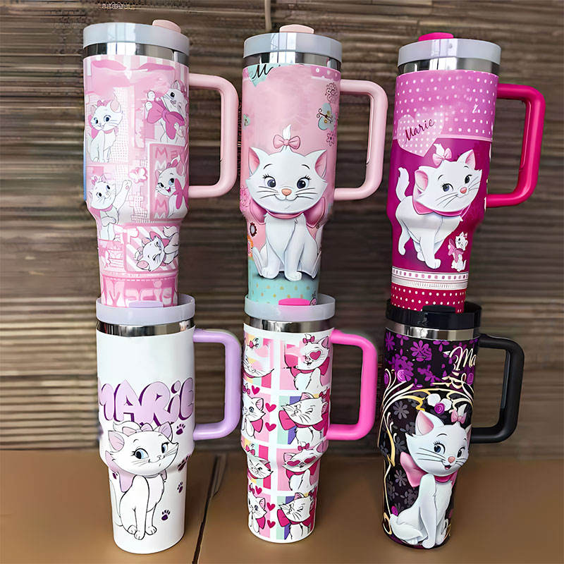 โรงงานผลิตแก้วน้ำสแตนเลสขนาด 40 ออนซ์ พร้อมหูจับและหลอดดูด แบบเคลือบสีรุ้งพ่นเคลือบผง แก้วน้ำสำหรับเดินทางพร้อมฝาปิด รับทำโลโก้ตามสั่ง