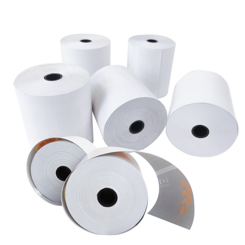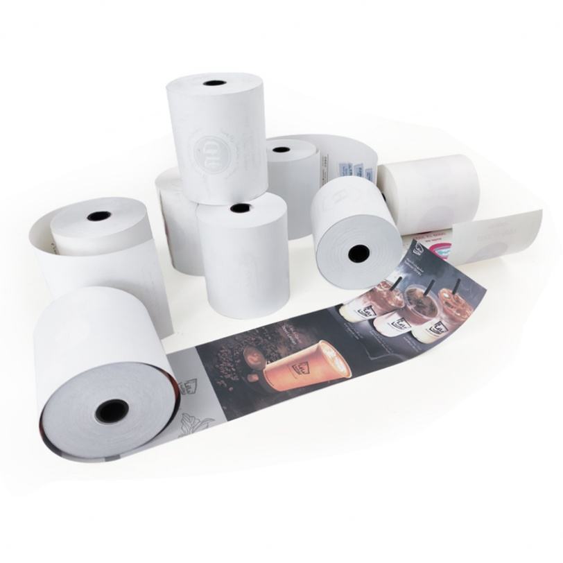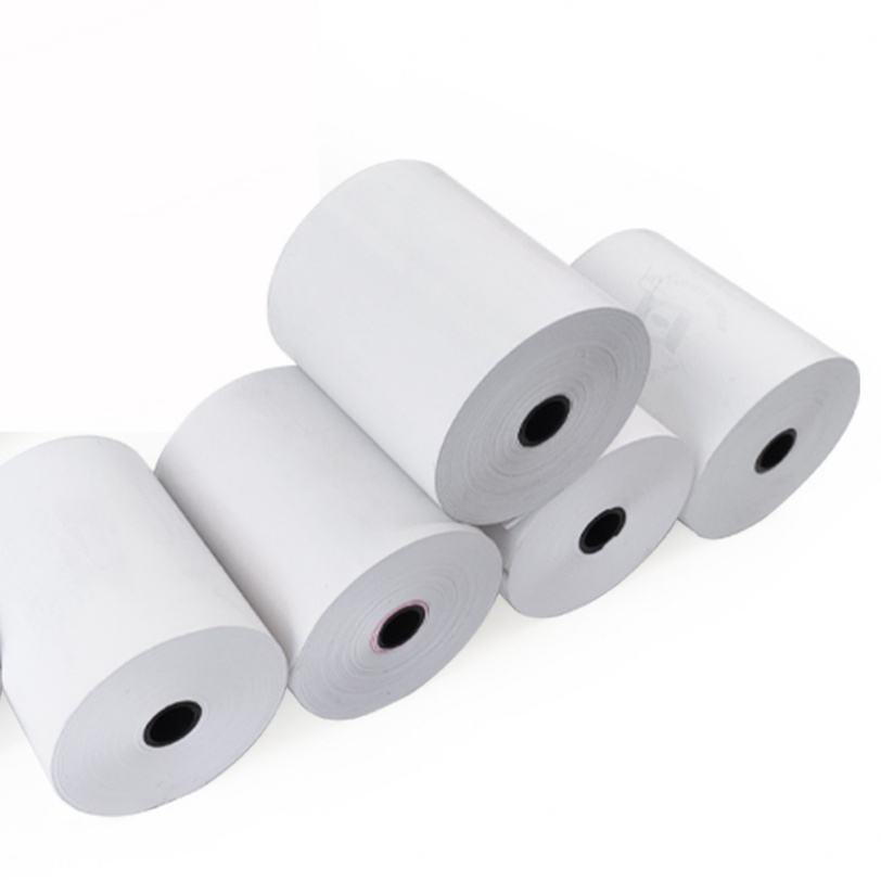 โรงงานผลิตกระดาษม้วนความร้อน POS ขนาดตามสั่ง กระดาษสำหรับเครื่องบันทึกเงินสด 80x80 มม. ใช้สำหรับซูเปอร์มาร์เก็ต ธนาคาร โรงแรม ร้านอาหาร