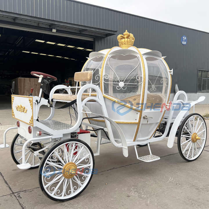 รถม้าฟักทองใช้แบตเตอรี่ไฟฟ้าใช้สำหรับงานแต่งงานม้าฟักทองรถม้ายี่ห้อ Zhenda