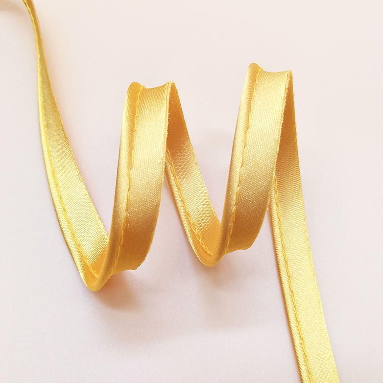 Factory Supply Golden Yellow Bright Satin Piping Cord 9MM Double Cloth Edge Decorative Silky Piping Tape