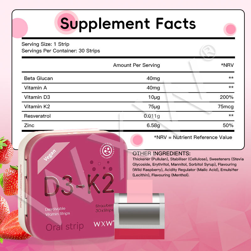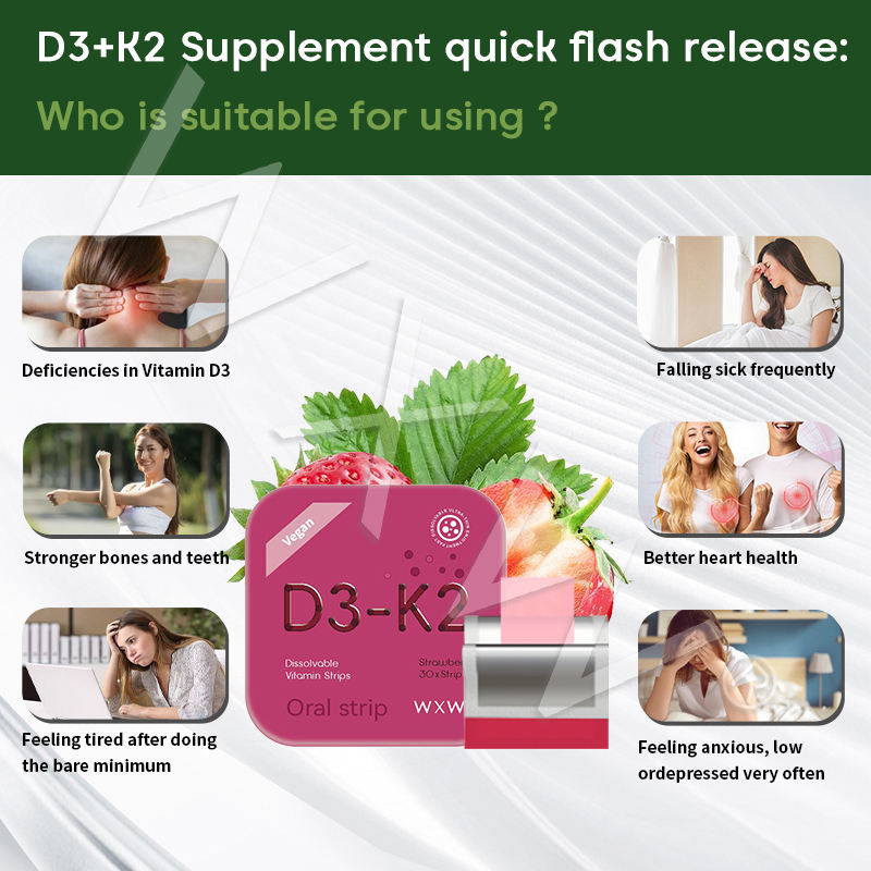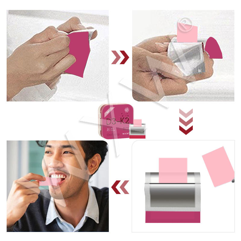 ฟิล์มแถบ K2วิตามิน D3ช่วยเพิ่มความสูงมีแคลเซียมและวิตามินข้อต่อเพื่อสุขภาพแถบ D3และ K2ช่องปาก